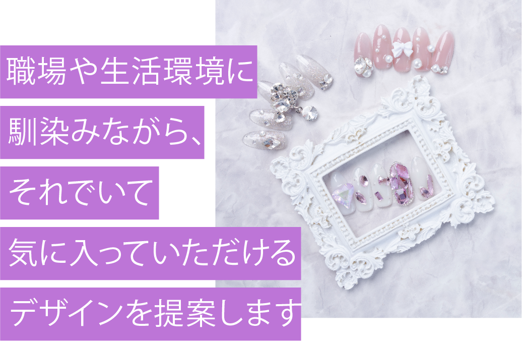 爪のお悩みやご希望デザインに可能な限り寄り添い、そのうえでベストな提案をするようにしています。